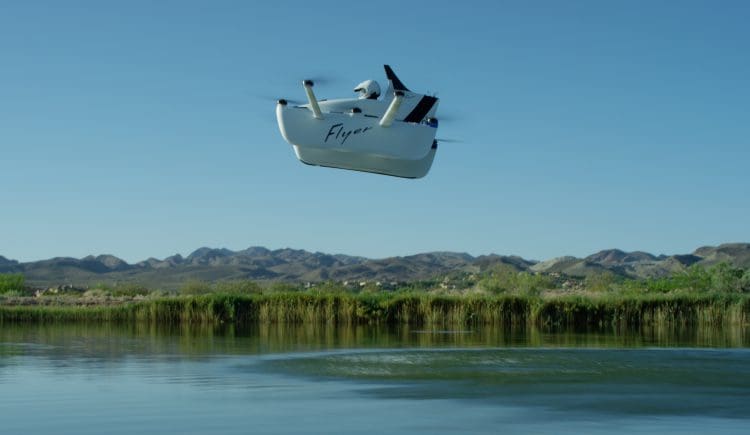 The Flyer is a personal flying vehicle designed and built by Kitty Hawk. It combines electric power and vertical take-off to pioneer an entirely new way to fly. It rises like a helicopter and flies like a plane, eliminating the need for a runway, though the current iteration also allows landing on water.